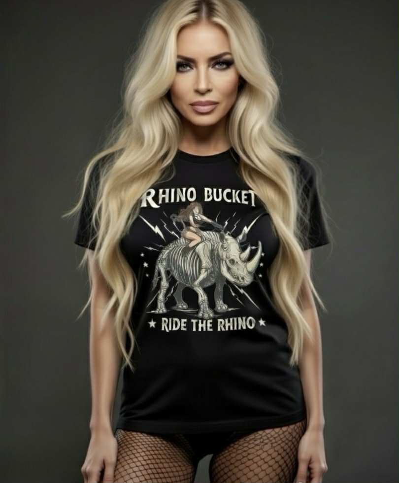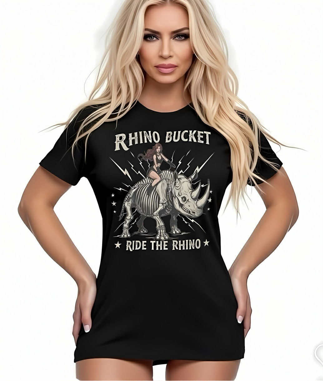 Version two of girl on rhino skeleton. Gildan soft T-shirt